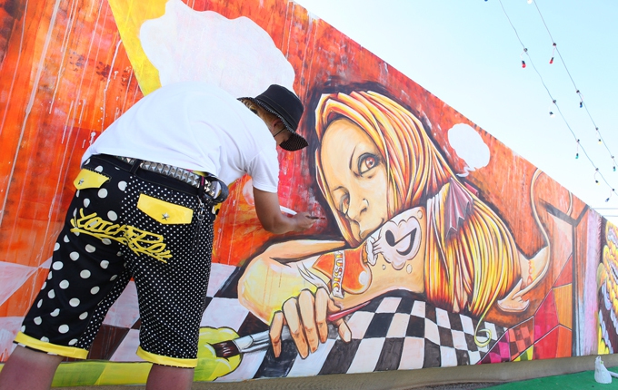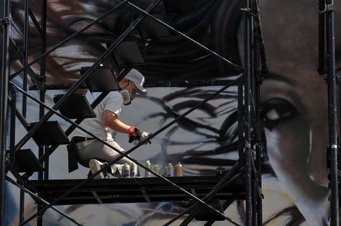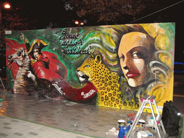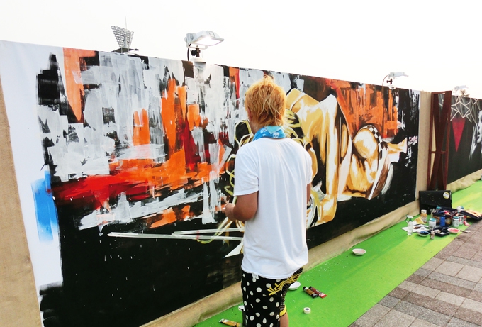 韓国で初めて開催されたアートフェスにて4日間に渡ってライブペイント。最後の1日は地元アーティストと即興コラボペイント。