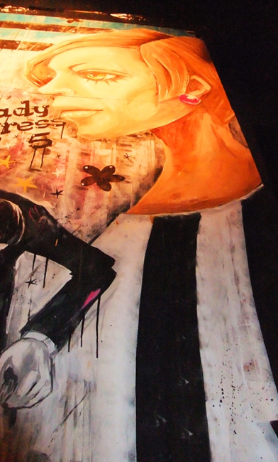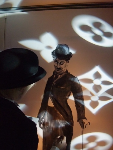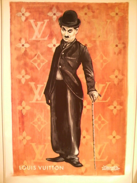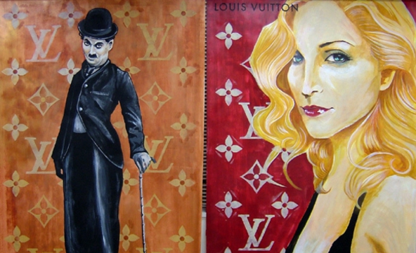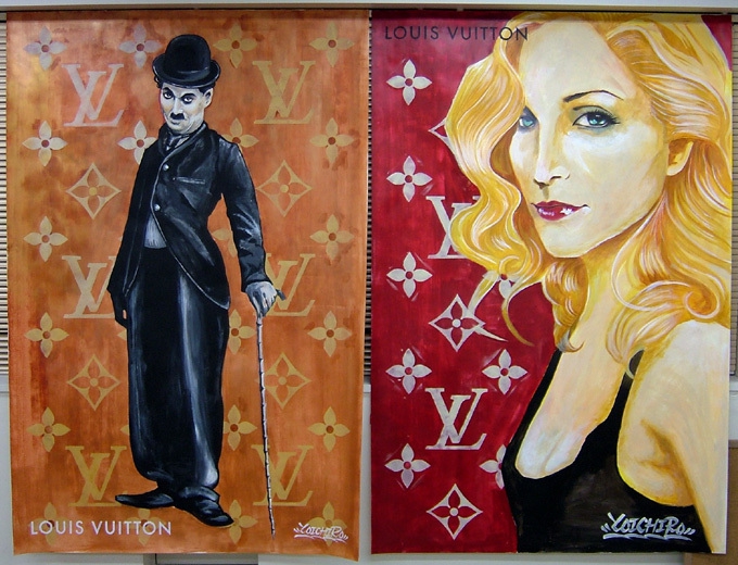 ルイ・ヴィトン銀座並木通り店で行われたVIP向けのイベントにて、2009年のテーマであるメンズ・チャップリン、レディース・マドンナを2日で2作品ライブペイント。ルイ・ヴィトンジャパンのスタッフの方々のバックにもペイント。