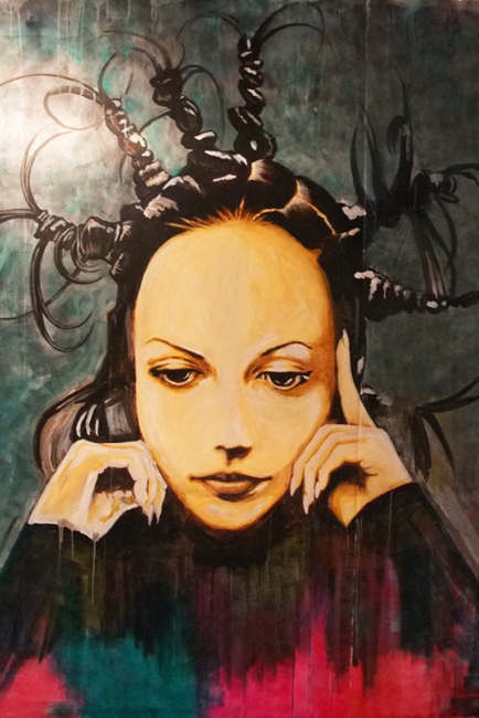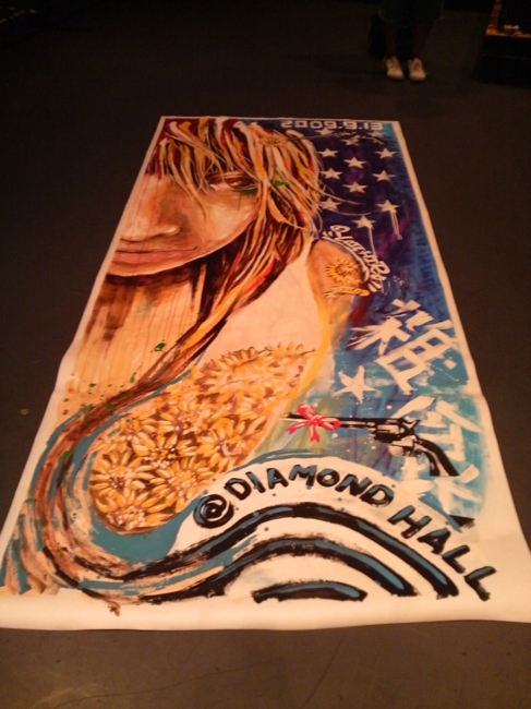 原宿にオープンしたギャラリースペースIvvaのレセプションパーティーで、多くの作家さんの展示の中ライブペインティングで参加してきました。招待制のイベントで、大阪のFM802のDJカマサミコングさんや、声優のかないみかさんも見にきていただきました。2800×1550/3時間