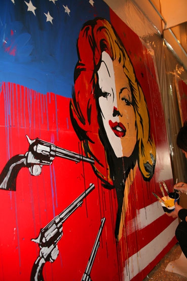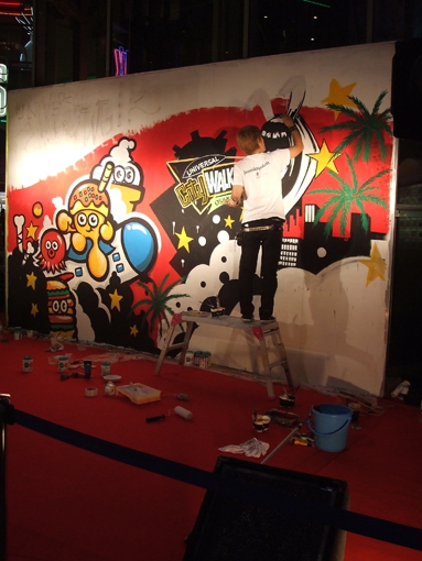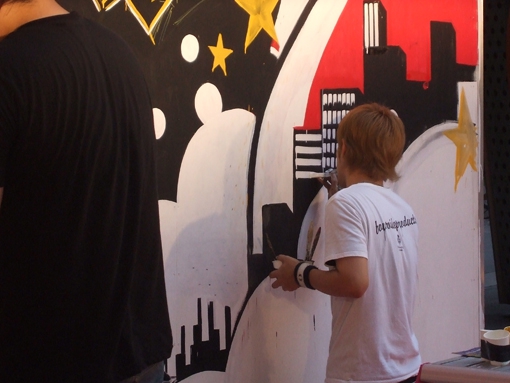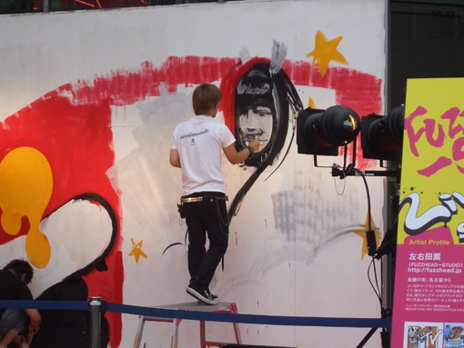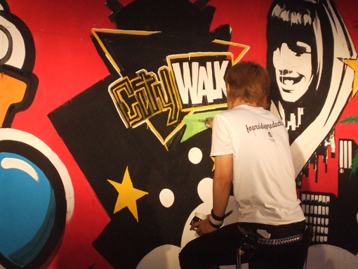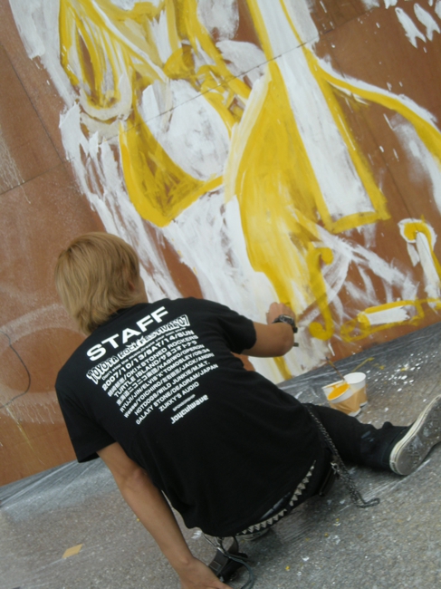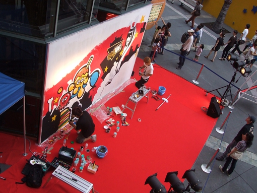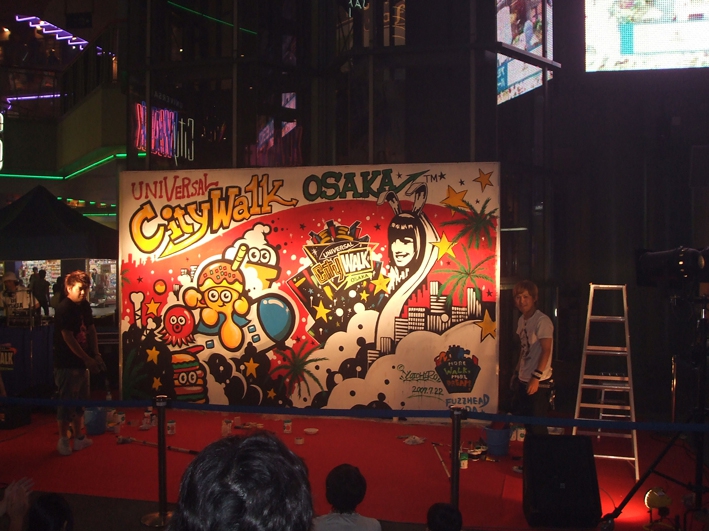 UNIVERSAL STUDIO JAPANのCITY WALKライブペインティング。ライブペイント後は1ヶ月間展示された。2008年には7周年のイベントで同様にライブペインティングが行われた。