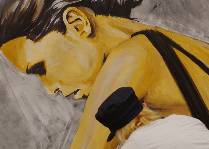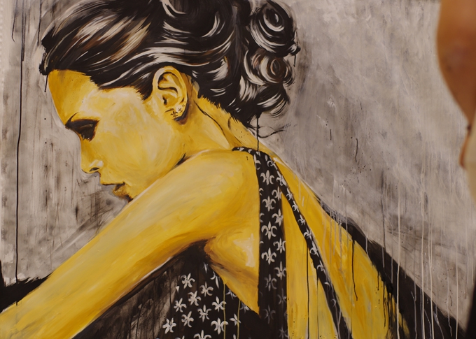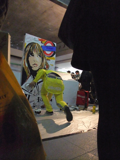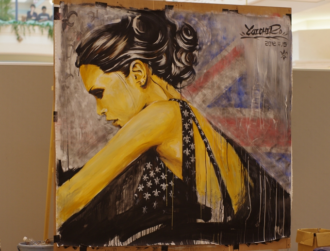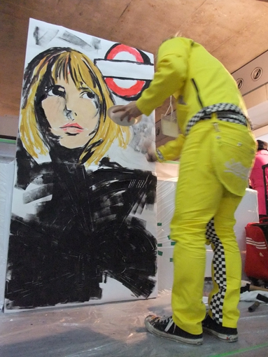 副都心線のホームで終電から始発までの間で行われたファッションショーにてライブペインティング。終電から始発までの3時間の間で行われる予定のショーだったが、当日の人身事故の影響で終電が遅れ、1時間に短縮して行われたため1時間でペイント。
