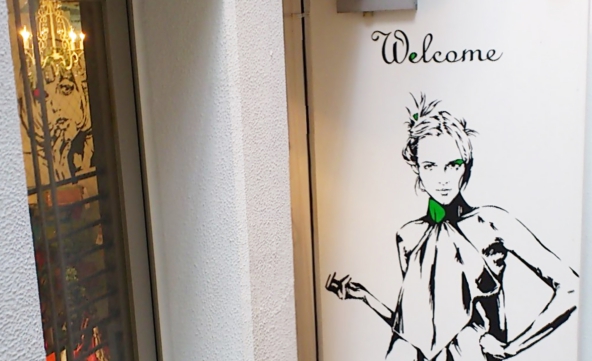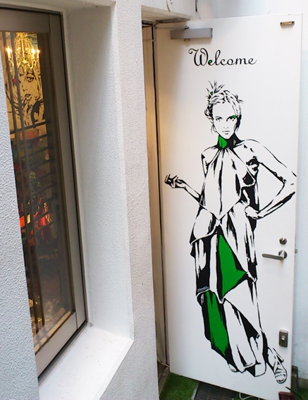 2013年7月に原宿にオープンしたセレクトショップのドアと壁へのペイント。ドアは自由にイメージし絵柄を決め、壁はショップのイメージを描き起こしてのペイント。